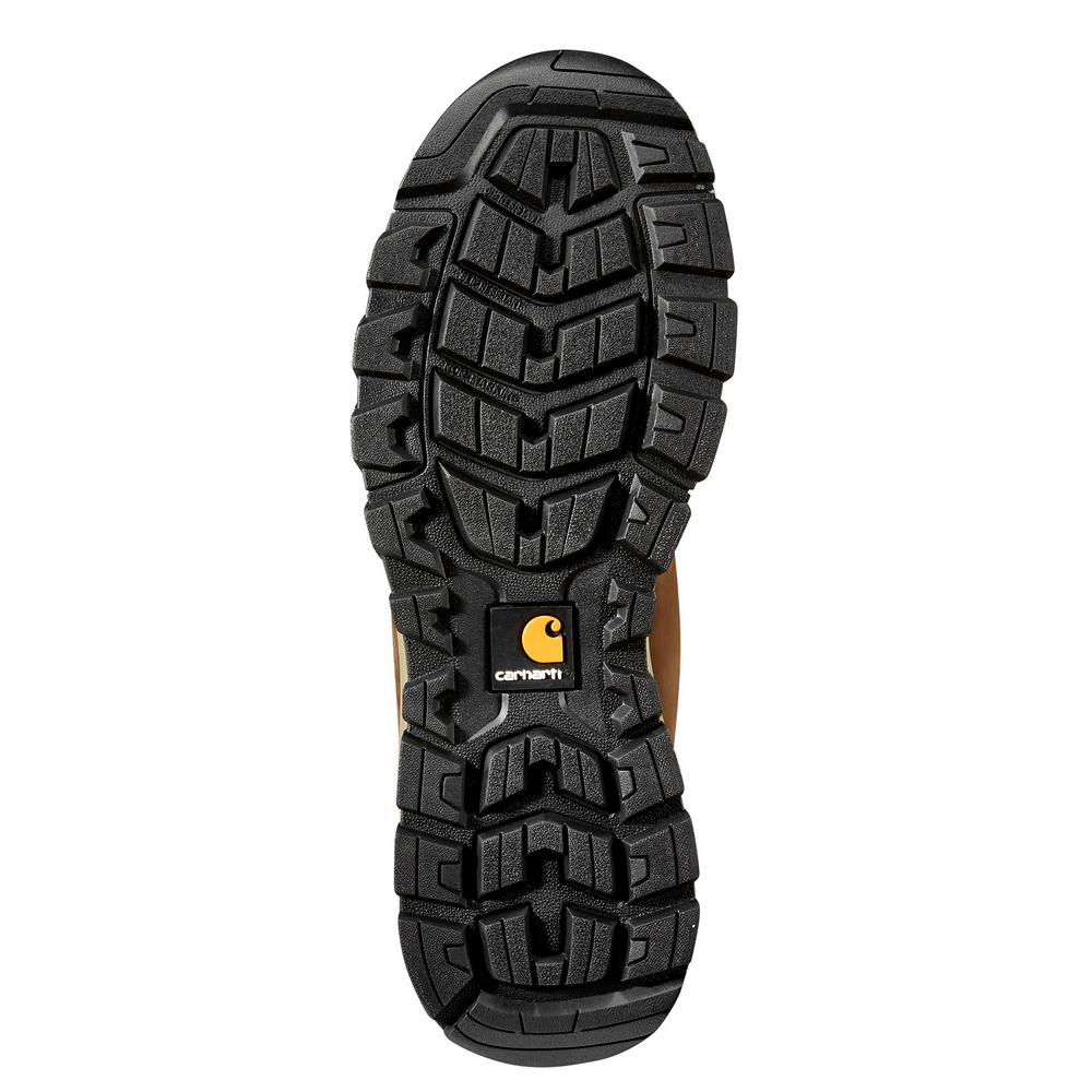Nubuck leather with high abrasion resistant 1260D material, Storm Defender® waterproof breathable protection, FastDry® technology lining wicks away sweat for comfort, Carhartt footbed made with Insite® technology, Cement construction with Carhartt outdoor-ready rubber lug outsole, Non-Safety Soft Toe EH meets ASTM F2892-18 EH standards