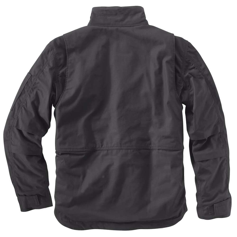 Carhartt designed this men's coat with all of the safety and technical features the toughest jobs require. Flame-resistant duck repels water, while stretch panels give you full freedom of movement. Warm insulation made of 55% modacrylic 30% aramid 15% polyester keeps you comfortable in frigid weather.