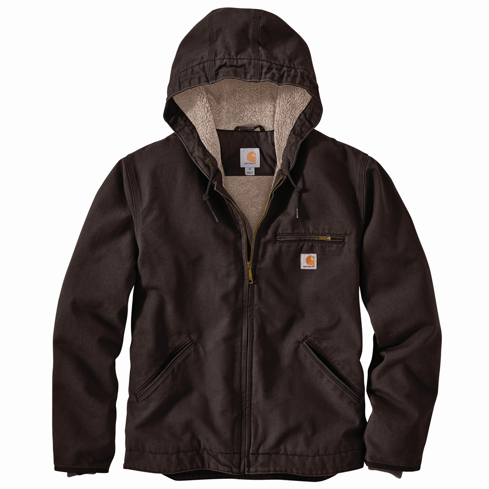 WASHED DUCK SHERPA LINED HOODED JACKET - DKB-Dark Brown | Carhartt 104392