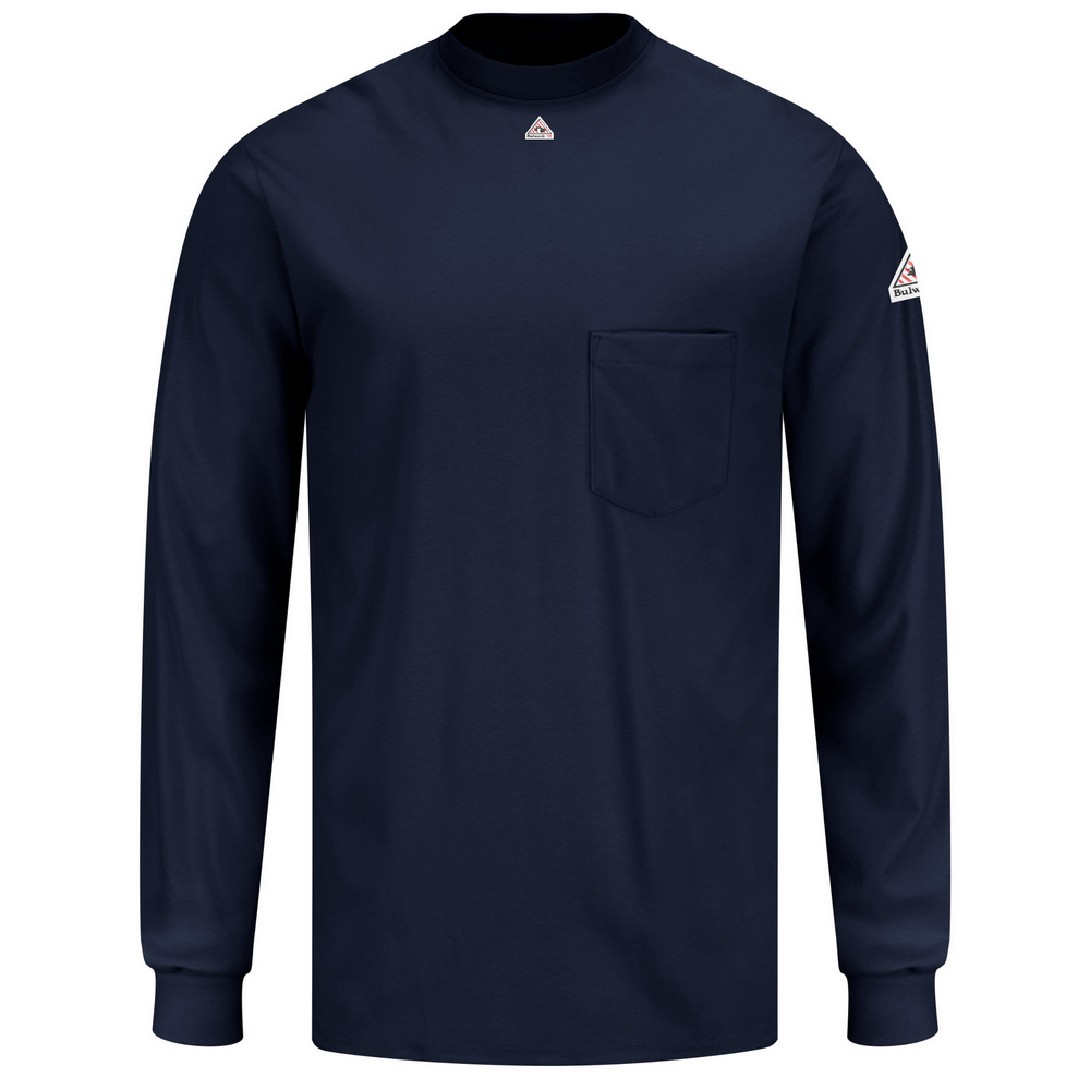 Meet the most comfortable FR long sleeve T-shirt you'll ever wear—we even removed the tag for a non-itchy experience. This CAT 2 AR/FR, NFPA® 2112 compliant tee features a heat seal Bulwark® triangle centered at neck to show wearer has on FR undergarment.