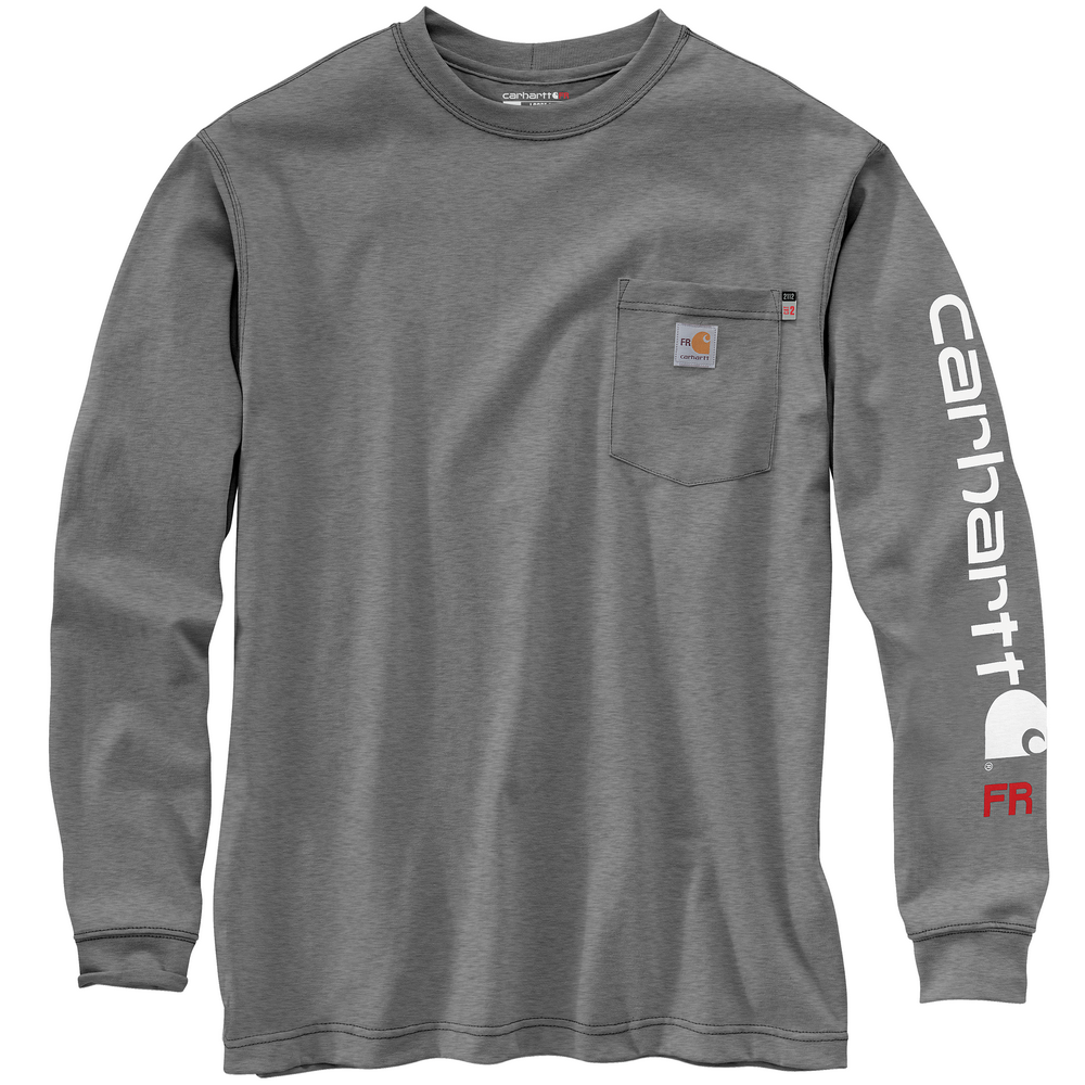 Flame Resistant Force Loose Fit Lightweight Long-Sleeve Logo Graphic T-Shirt - 020-Granite Heather | Carhartt 104130