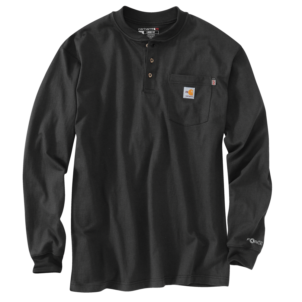 Flame Resistant Force Loose Fit Midweight Long-Sleeve Pocket Henley T-Shirt - BLK-Black | Carhartt 100237