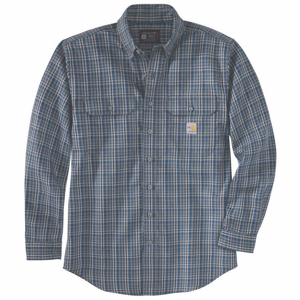Flame Resistant Force Rugged Flex Loose Fit Midweight Twill Plaid Shirt - 492-Dark Blue-Navy | Carhartt 104507