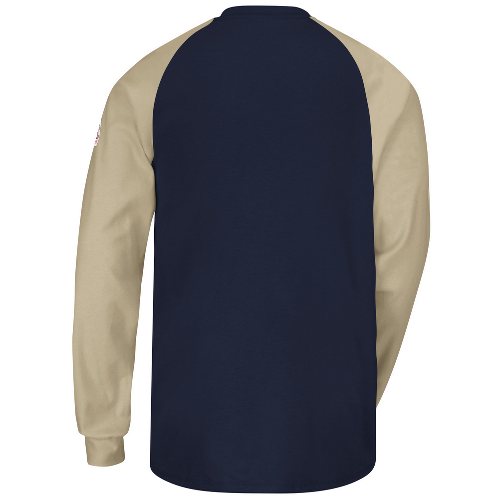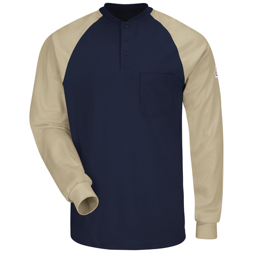 FR COLOR BLOCK LIGHTWEIGHT LONG SLEEVE HENLEY - NK-Navy Khaki | Bulwark SEL4