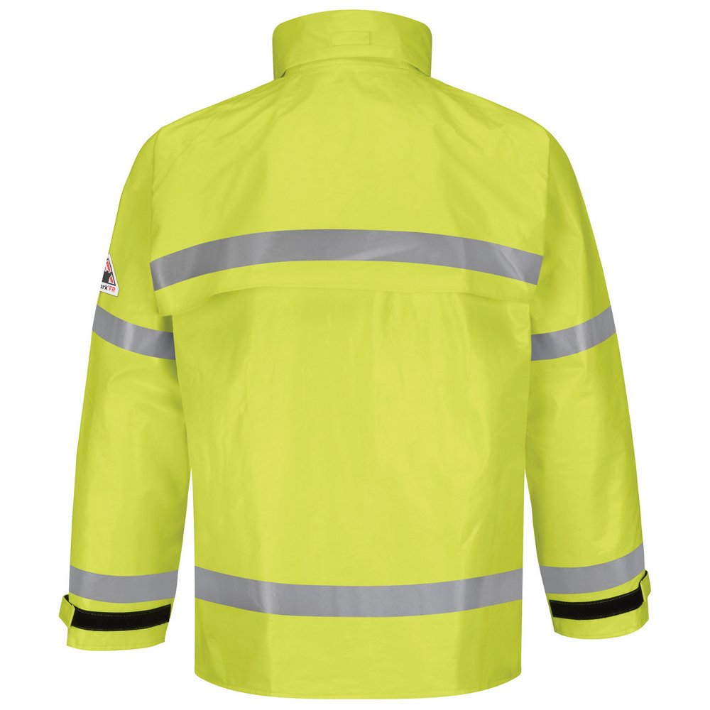 HI-VISIBILITY FR RAIN JACKET WITH HOOD - YE-Yellow Green | Bulwark JXN6