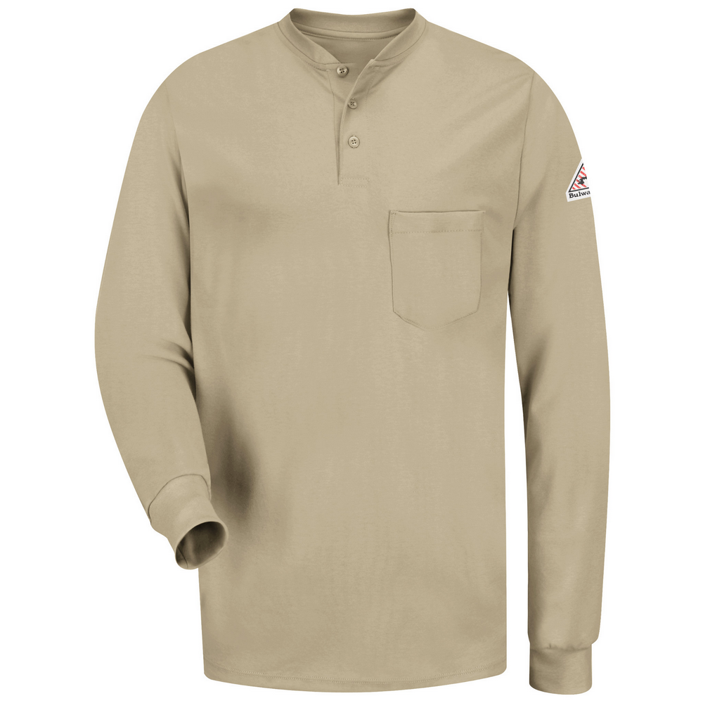 LONG SLEEVE FR LIGHTWEIGHT HENLEY - KH-Khaki | Bulwark SEL2