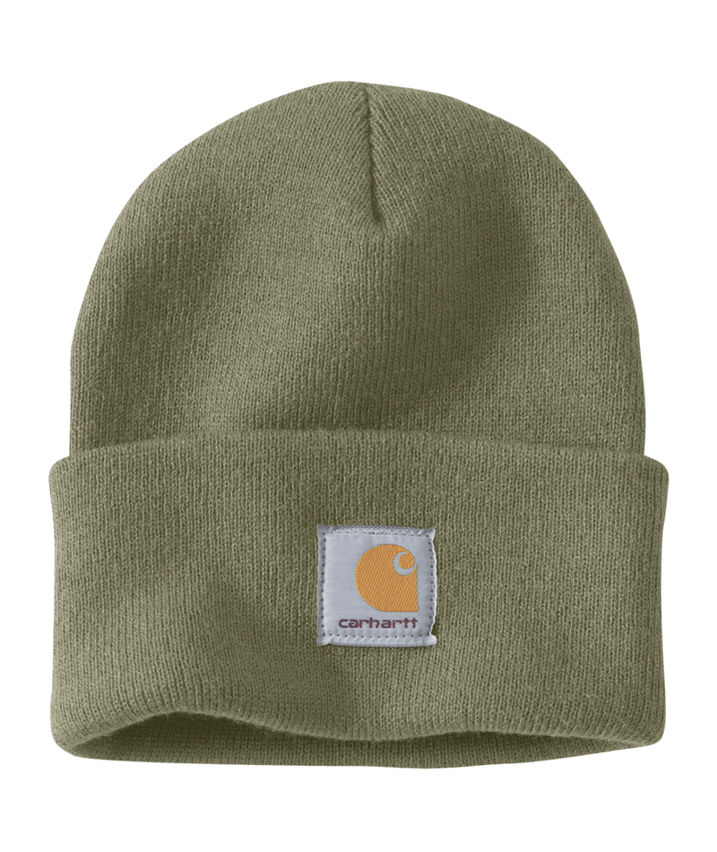 A cold-weather Carhartt classic that's been keeping hardworking heads warm since 1987. This men's acrylic watch hat is made of stretchy rib knit that's soft to the touch and finished with a Carhartt patch on the front.