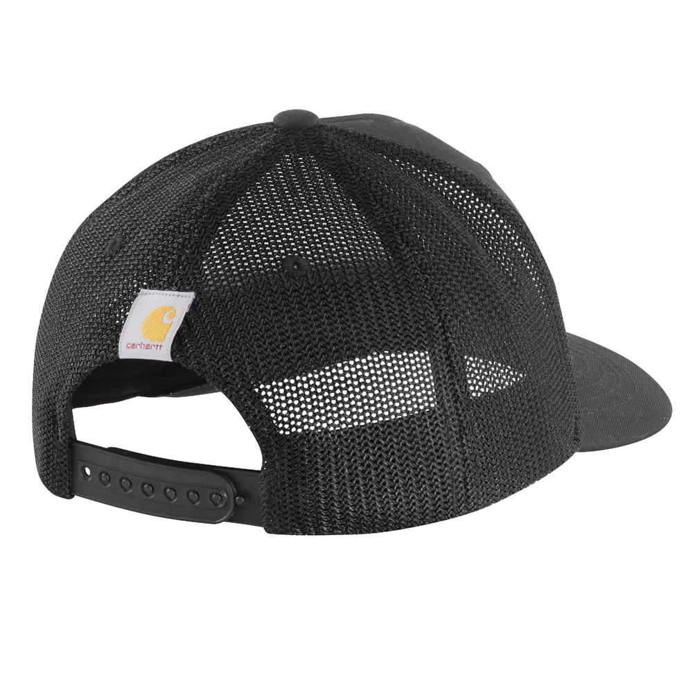 Exclusive Trimming •100% cotton twill with 95% polyester / 5% elastane mesh back •Carhartt Force® sweatband fights odors and FastDry® technology wicks sweat to keep you cool •Medium-profile, structured Flexfit® 110 cap with pre-curved visor •Adjustable fit with plastic closure that accommodates 10 different head sizes •Stretch in sweatband and crown provides a comfortable fit •Carhartt 1889 patch on front •Carhartt label sewn on back •Imported