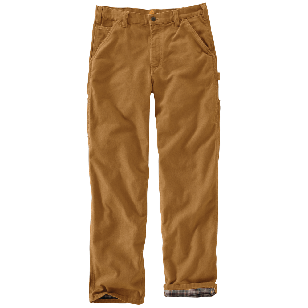 Duck canvas durability and the warmth of flannel. These men's pants are a flannel-lined version of Carhartt's classic duck canvas work pants. They are cut for a loose fit with plenty of room to move and bend naturally.