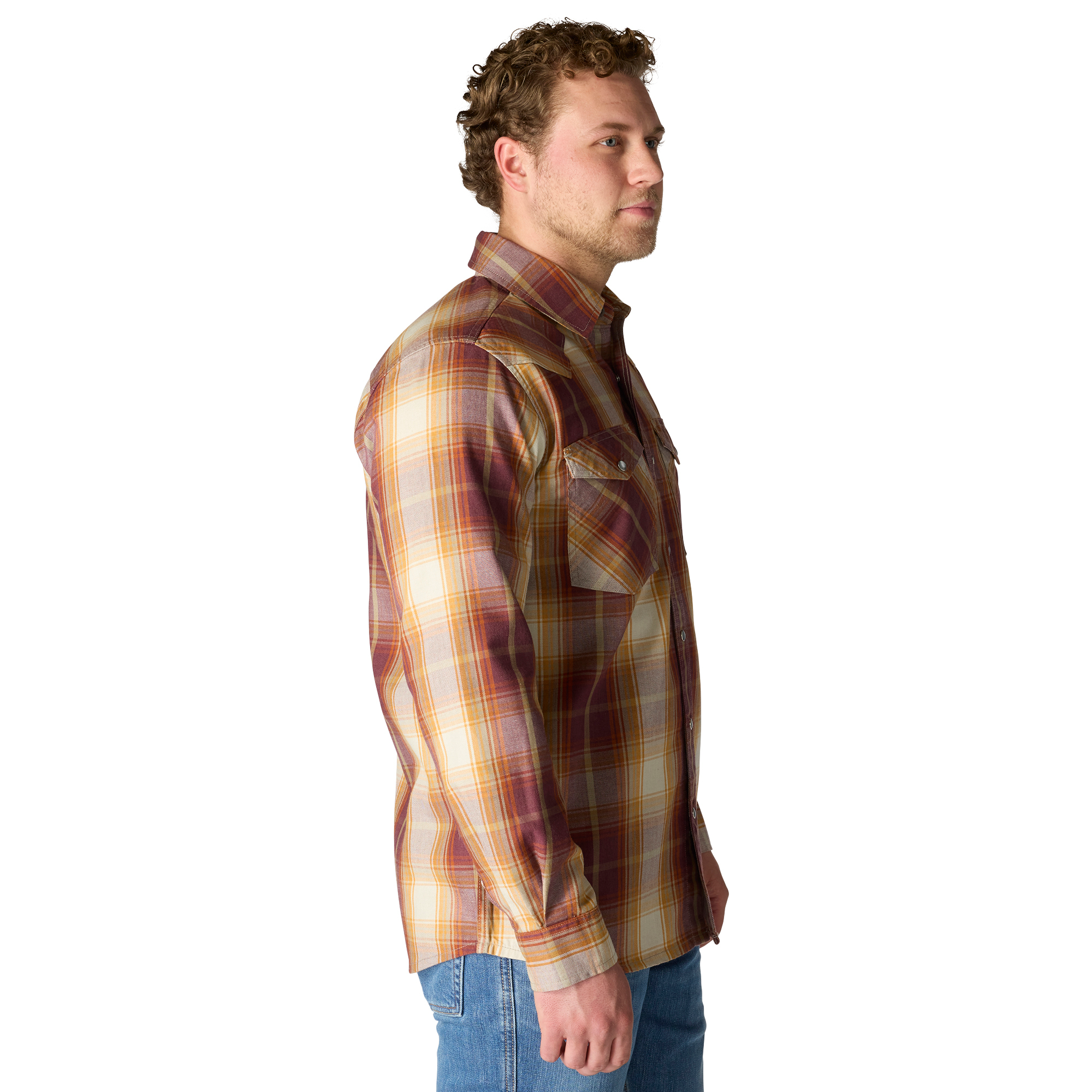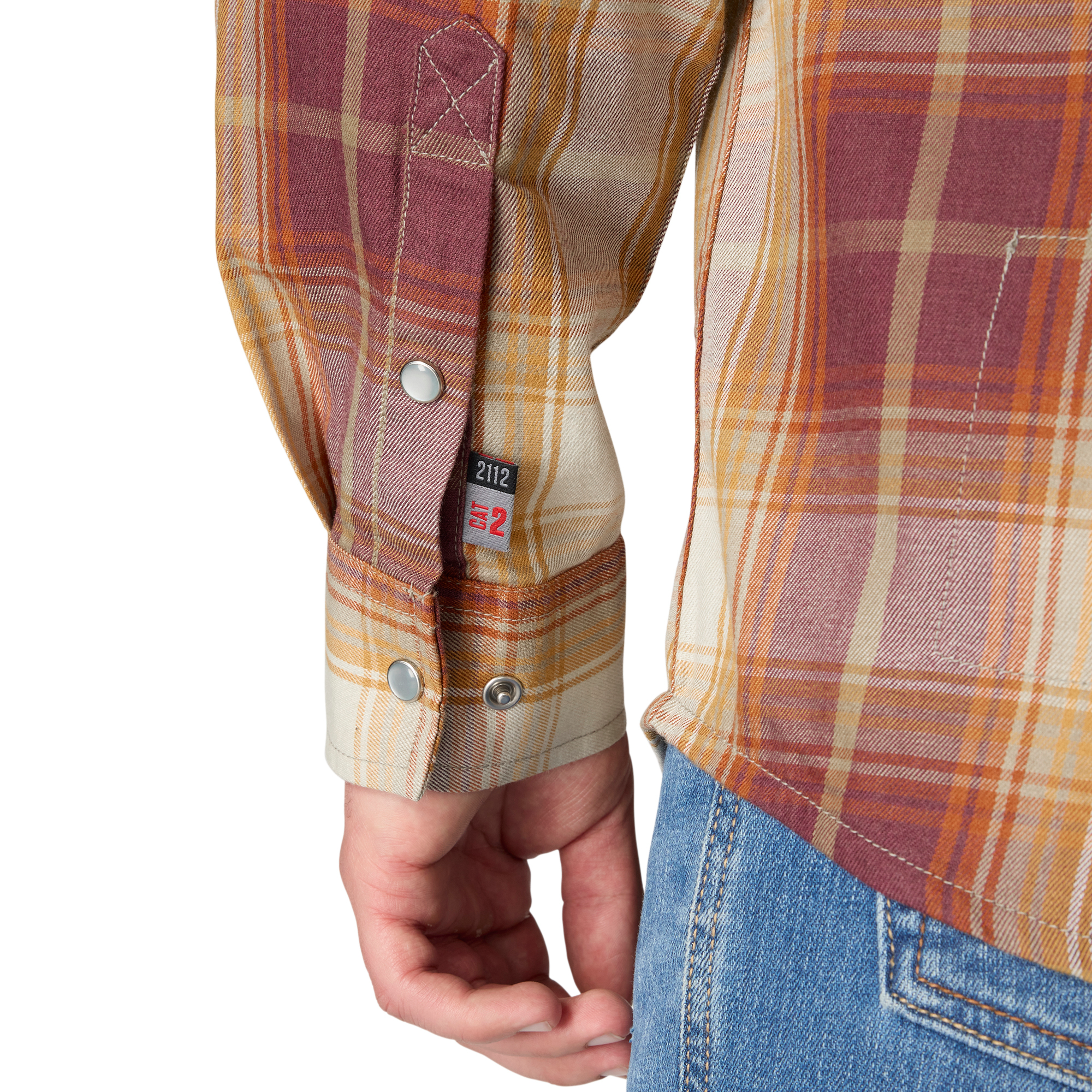 Flame Resistant Montana Relaxed Fit Midweight Twill Snap Front Plaid Shirt - RD8-Port/Carhartt Gold | Carhartt 107070