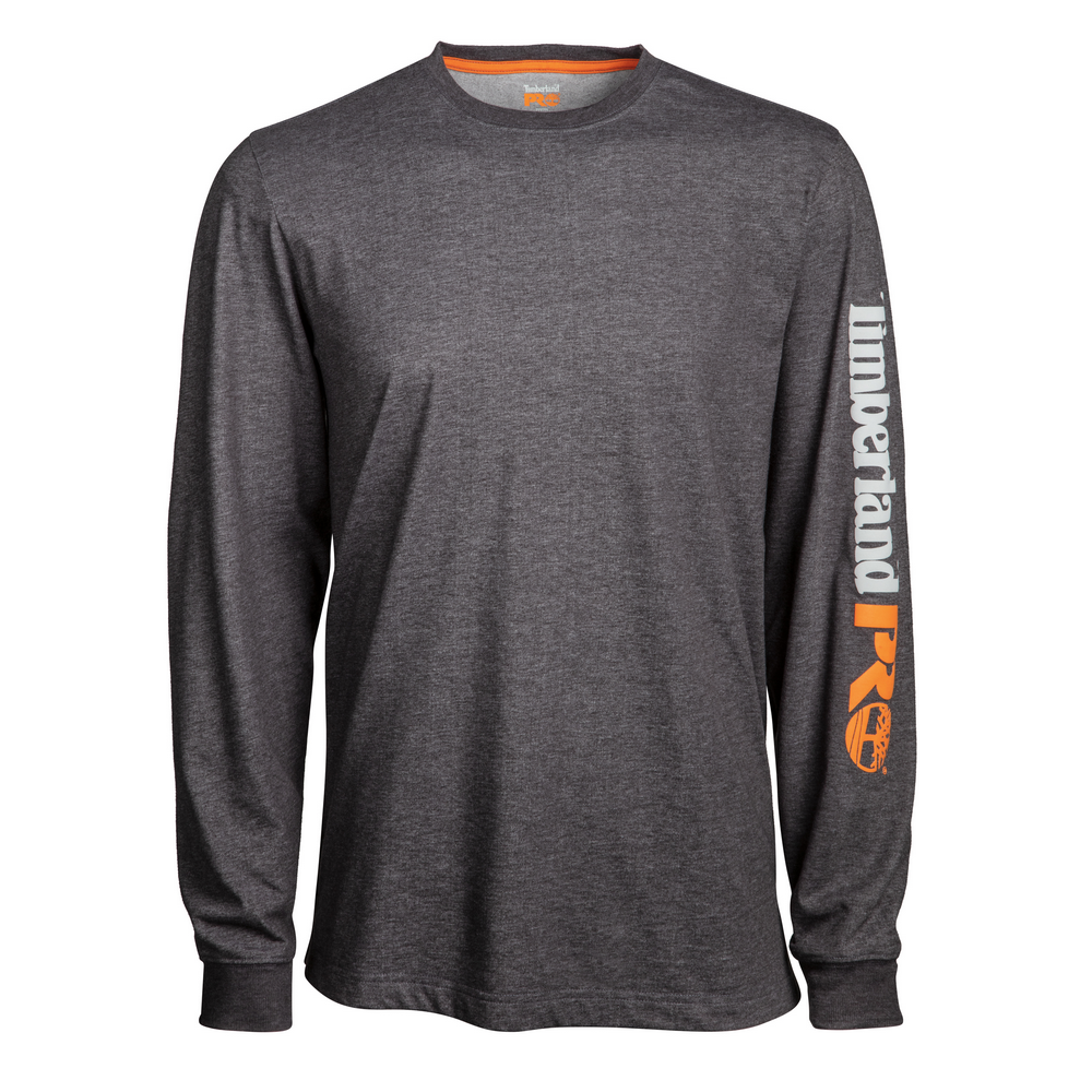 BASE PLATE BLENDED LONG SLEEVE T-SHIRT WITH LOGO - 013-Dark Charcoal Heather | Timberland PRO TB0A1HRV