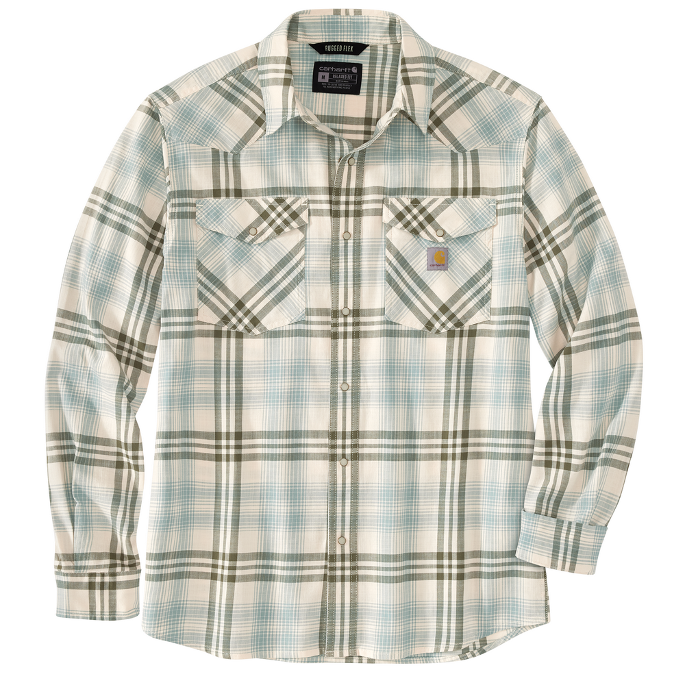 Montana Rugged Flex Relaxed Fit Lightweight Long-Sleeve Snap-Front Plaid Shirt - GH5-Patina | Carhartt 106430