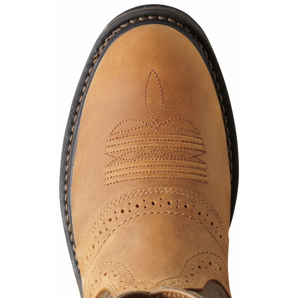 All-conditions Workhog with Western flair. Waterproof Pro shuts out the wet and snow. Ariat's ATS Max platform provides maximum torsional stability for reduction of foot fatigue and proper body alignment. The sole pairs a lightweight, cushioning EVA midsole with Ariat's highly abrasion-resistant oil- and slip-resisting Duratread outsole for the ideal combination of comfort and durability. Features Ariat's unique, patent-pending U-Turn Entry System, allowing easy entry with a true fit regardless of foot shape.
