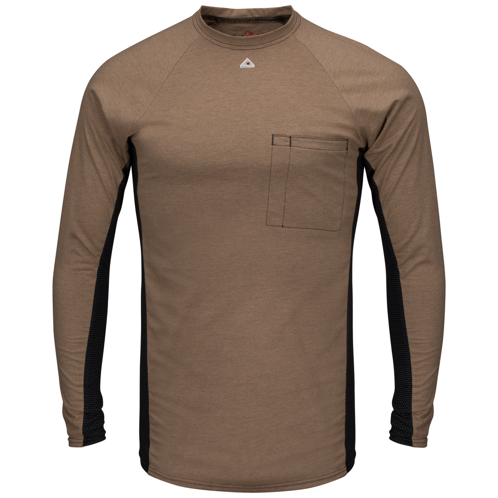 FR LONG SLEEVE BASELAYER WITH MESH GUSSET AND POCKET - KH-Khaki | Bulwark MPS8