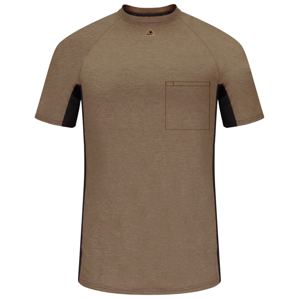 FR SHORT SLEEVE BASELAYER WITH MESH GUSSET AND POCKET - KH-Khaki | Bulwark MPS4