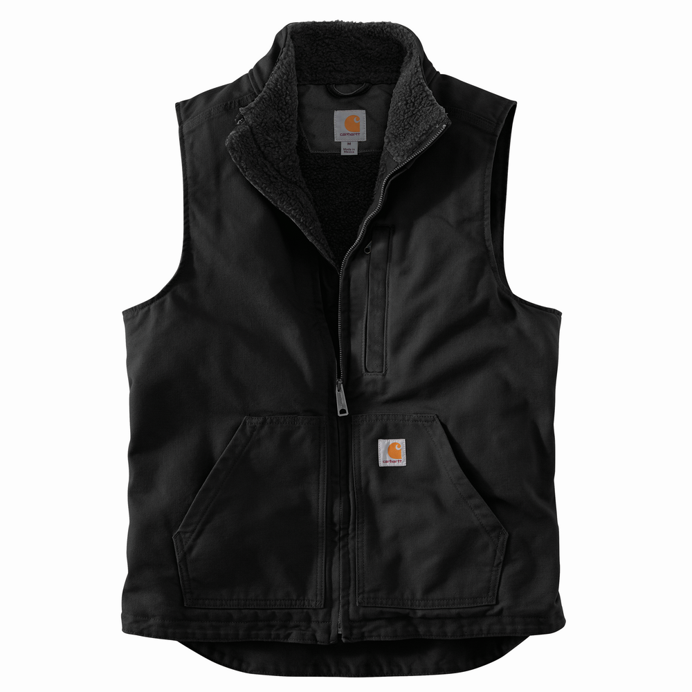 LOOSE FIT WASHED DUCK LINED MOCKNECK VEST - BLK-Black | Carhartt 104277