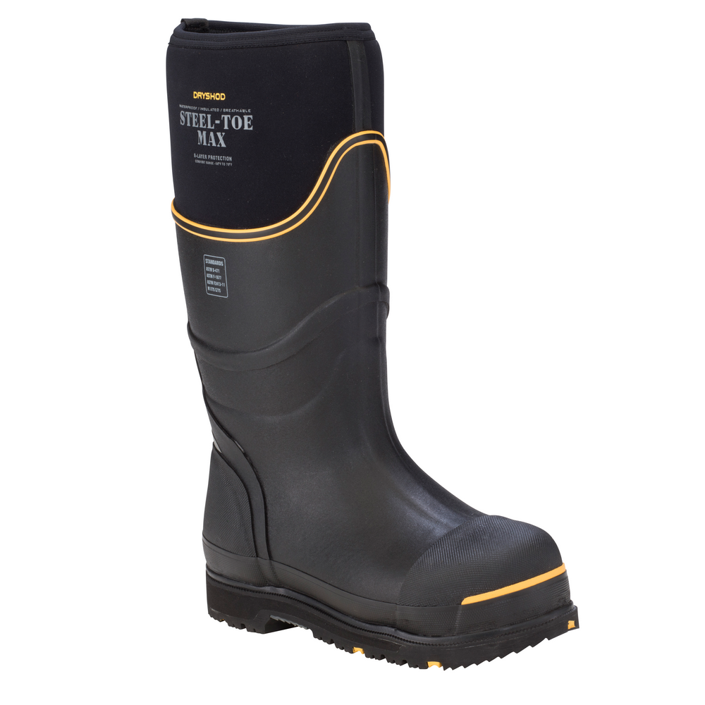 MEN'S STEEL TOE MAX BOOT - BK-Black & Yellow | Dryshod STMUHBK
