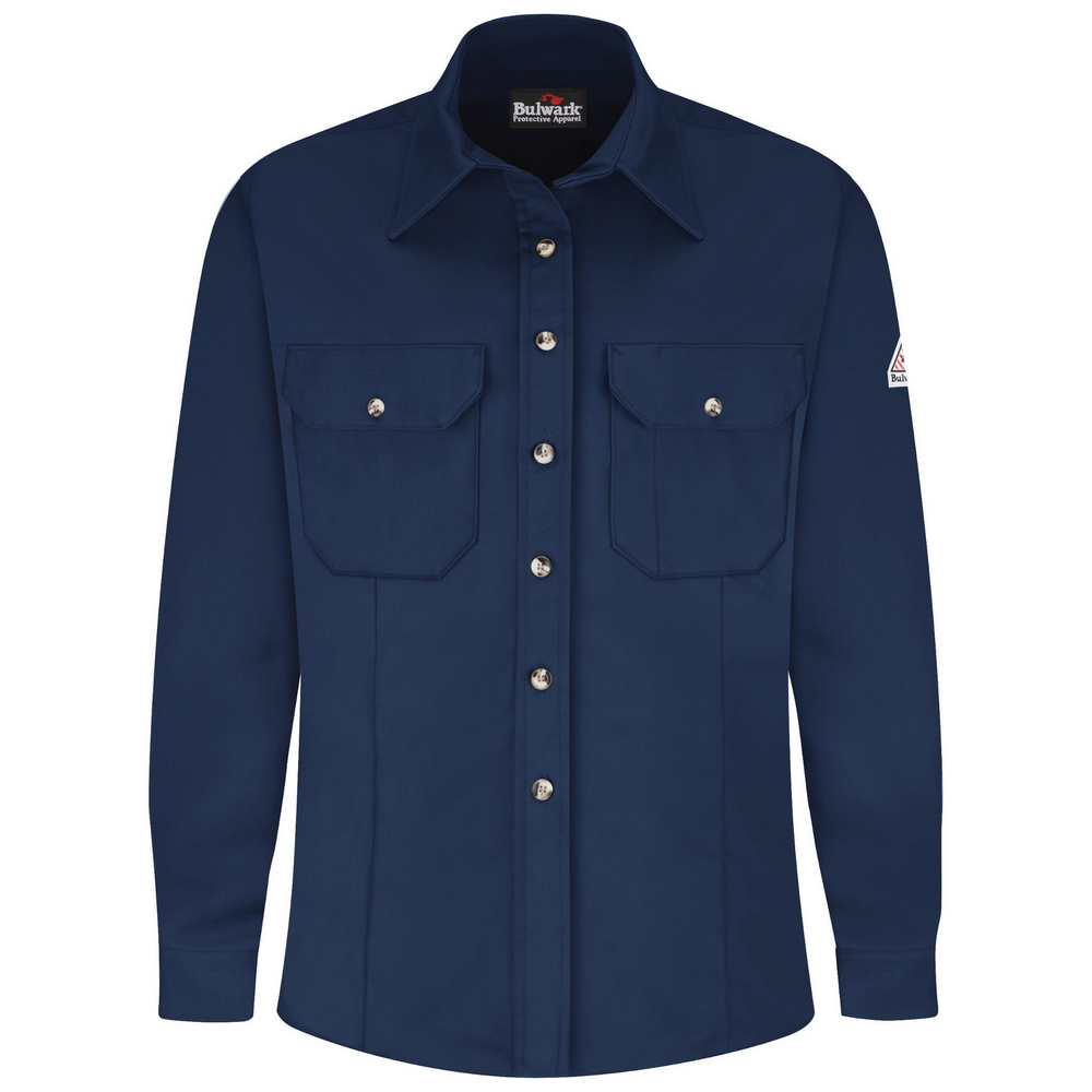 This midweight FR uniform shirt gives a tailored look and offers features for improved comfort and performance with CAT 2 AR/FR protection and darts in front and back for a feminine fit.