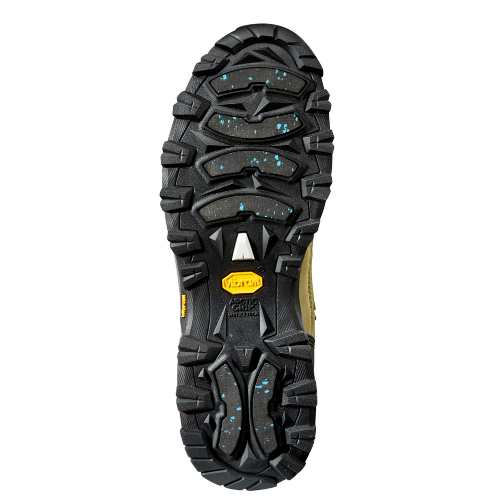 Nubuck leather with abrasion resistant 1260D material, Storm Defender® waterproof breathable protection, FastDry® technology lining wicks away sweat for comfort, Rubber heel bumper feature is designed to provide extra abrasion resistant durability, Texturized PU toe bumper coating provides extra abrasion resistant durability, Carhartt footbed made with Insite® technology, Light and high rebound EVA midsole, Vibram Arctic Grip outsole for traction, Non-Safety Soft Toe EH meets ASTM F2892-18 EH