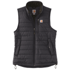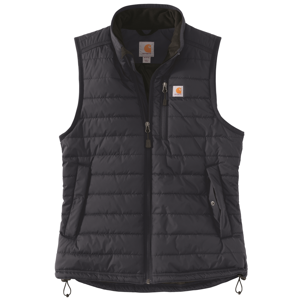 Unpredictable weather requires predictable protection. This women's insulated Carhartt vest is designed to keep you on task through wind and light rain. Its quilted nylon lining helps take the bite out cold weather, while the shell sheds light rain and blocks the wind. Multiple pockets inside and out give you plenty of secure storage options. ?1.75-ounce, 100% nylon Cordura® shell ?Quilted nylon lining for easy on and off; 100g polyester insulation for warmth ?Rain Defender® durable water repellent (DWR) keeps you dry and moving in light rain ?Wind Fighter® technology tames the wind ?Carhartt-strong, triple-stitched main seams ?Mock-neck collar ?Droptail hem for added coverage ?Left-chest map pocket; Two lower-front snap-button pockets ?Two lower front pockets with waterproof zip closures; Two inner hook-and-loop pockets ?Back length: Large regular: 28; Large tall: 30 ?Imported