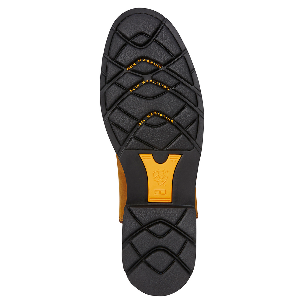 Mountain-tough work boots. The most durable platform on the market combines with Ariat's secure, comfortable ATS stability system. This oil- and slip-resisting sole provides extreme heat (tested to 750°F/400°C) and abrasion resistance. Premium full-grain leather upper, Goodyear Welt construction, ergonomic support and cushioning, this heavy-duty boot delivers.