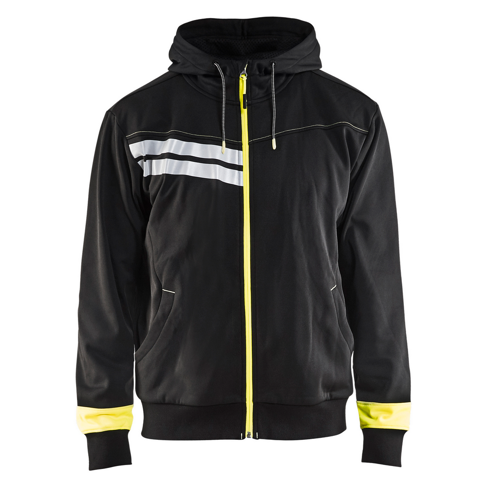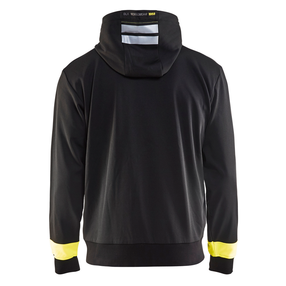 VISIBILITY HOODED ZIP FRONT SWEATSHIRT - 9933-Black/Hi-Vis Yellow | Blaklader 49582526