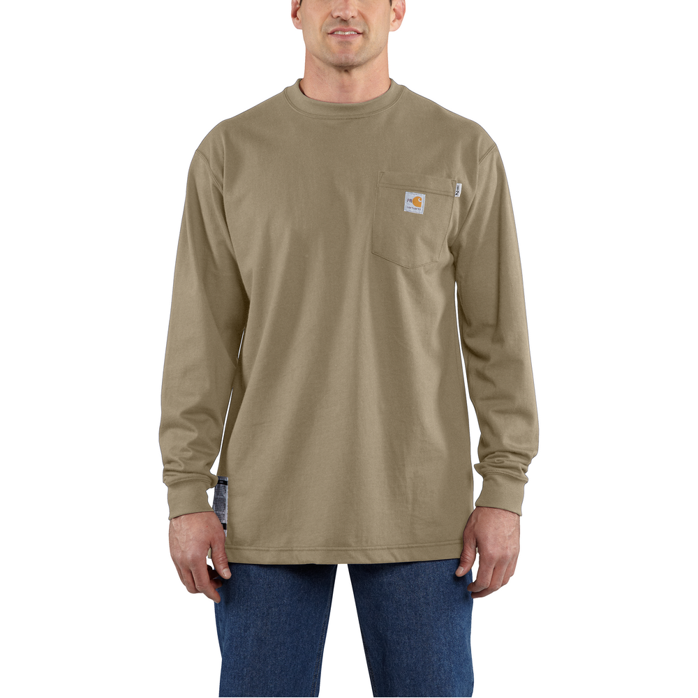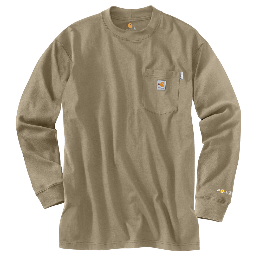 FR FORCE COTTON LONG SLEEVE T-SHIRT - 250-Khaki | Carhartt 100235