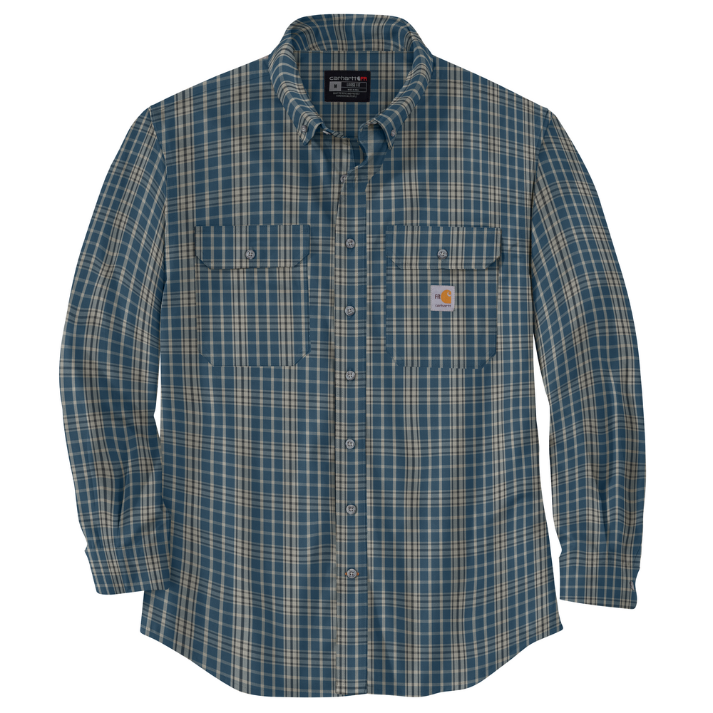 Flame Resistant Force Rugged Flex Loose Fit Midweight Twill Plaid Shirt - HM2-Storm Blue-Shadow | Carhartt 104507