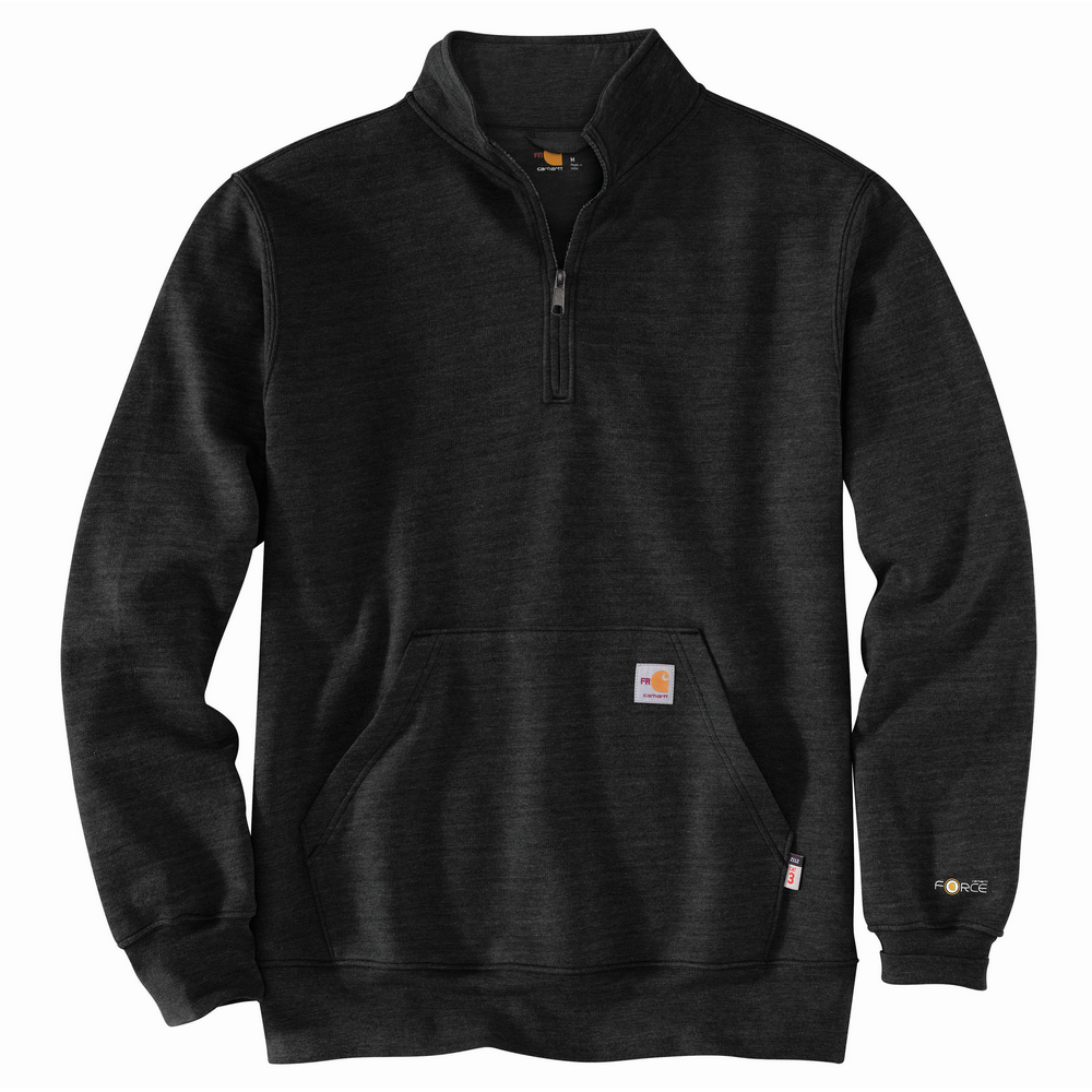 When fire hazards are part of the job, this men's Carhartt sweatshirt has you covered. Sweat-wicking, quick-drying fleece meets industry standards for flame resistance. Cut generously for all-day comfort. ?10.5-ounce, 40% cotton / 35% modacrylic / 15% viscose / 8% aramid / 2% antistat FR fleece ?Meets the performance requirements of NFPA 70E and ASTM F1506 ?UL® classified to NFPA 2112 ?Built with Force technology to wick sweat and dry fast ?FastDry® technology keeps you cool for all day comfort ?Original fit ?Mock-neck collar with quarter-length zipper ?Rib-knit cuffs and waist help keep out the cold ?Locker loop for easy hanging ?Carhartt FR and NFPA 2112 / CAT 3 labels sewn on pocket ?Front handwarmer pocket with inner media pocket ?Imported