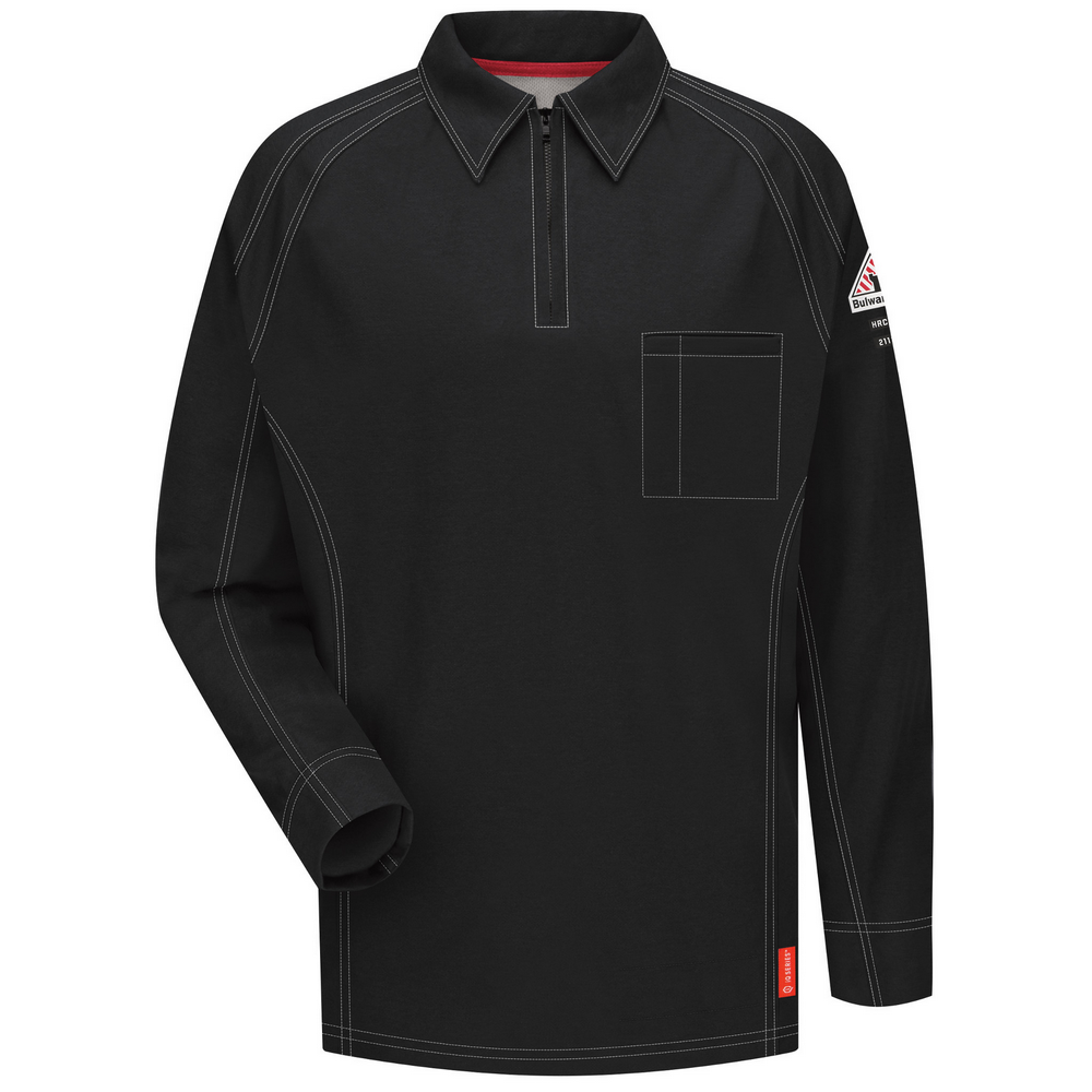 FR IQ SERIES LONG SLEEVE POLO - BK-Black | Bulwark QT12