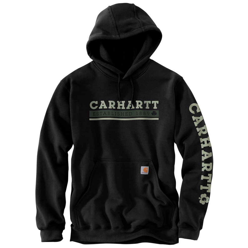 Celebrate the luck of the Irish in this men's Carhartt sweatshirt. A comfortable hoodie for St. Patrick's Day or any day, it's made from midweight cotton with a loose fit. Featuring a shamrock graphic on the chest and back.