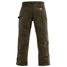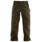 Carhartt's twill dungaree is as tough and durable as an old toolbox but washed for all-day comfort. Professional and versatile, it's outfitted with features that help you meet and match the challenges of a tough workday. 9.25-ounce, 100% cotton ringspun peached twill. Sits at the waist. Relaxed seat and thigh. Multiple tool and utility pockets. Left-leg hammer loop. Stronger sewn-on-seam belt loops. Heavy-hauling reinforced back pockets. Straight leg opening fits over boots. Imported